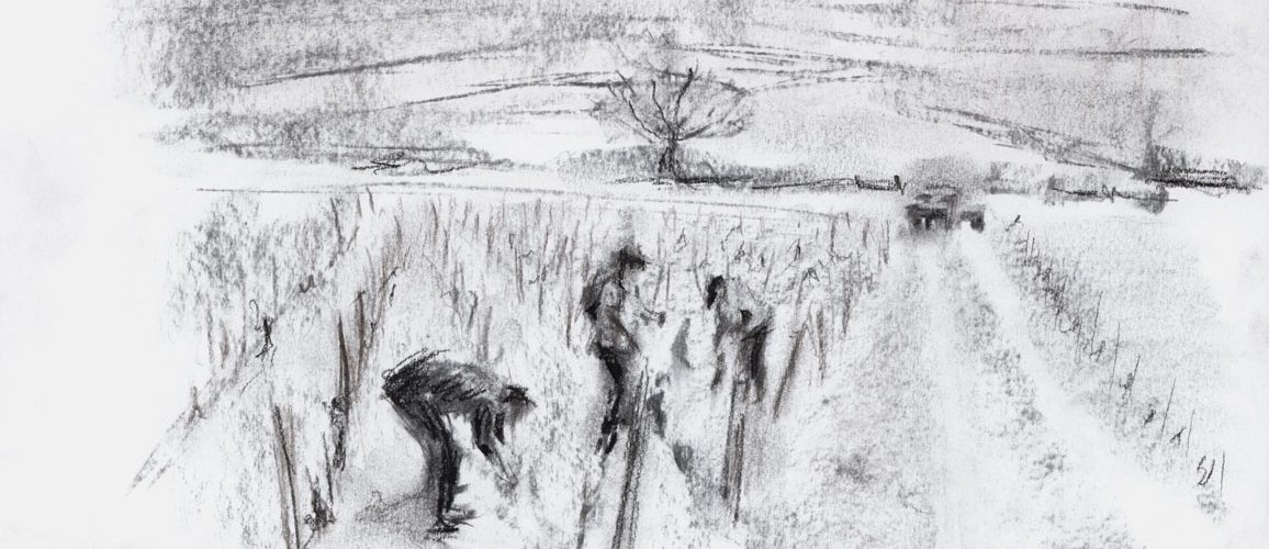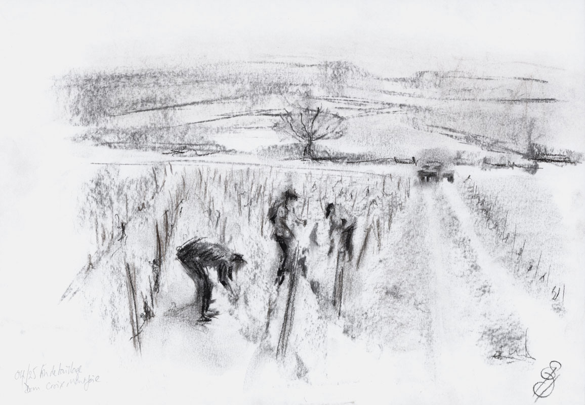 Final days of pruning the vines. Team of Domaine La Croix Montjoie.
