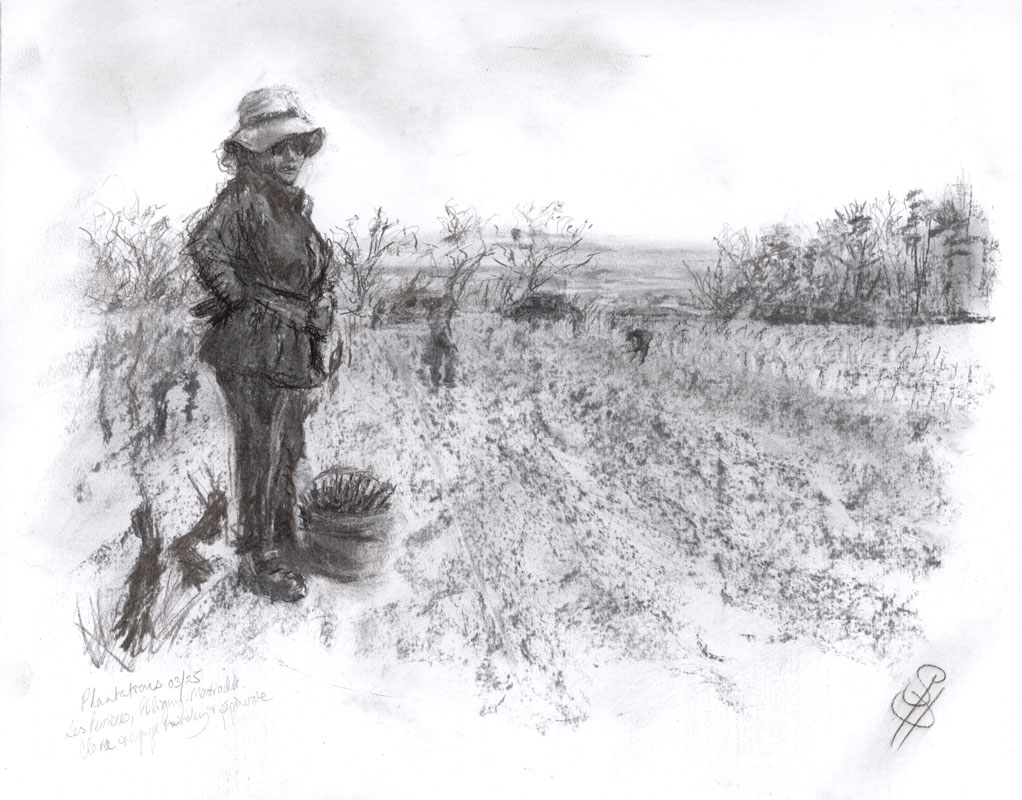 Clara and team from Domaine Faiveley, with the nursery planters, at les Perrières, Puligny-Montrachet.
