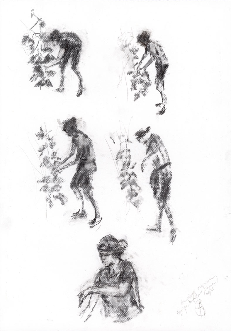 From the Collection Tramier team in Mercurey, the lifting and attaching of the vine branches, with an artistic view of the body stances in the work.