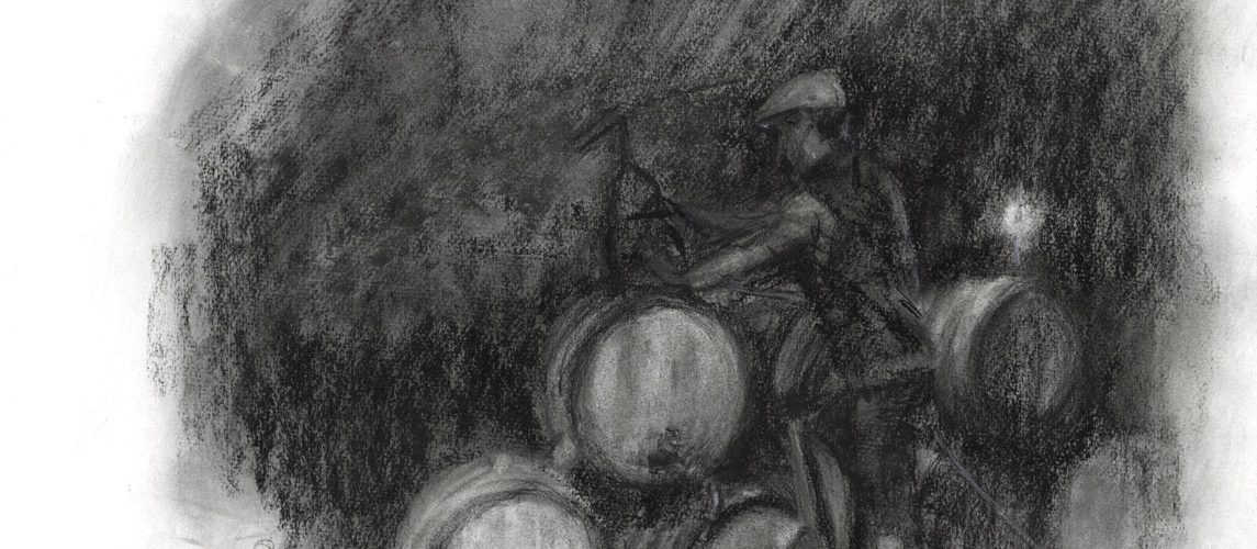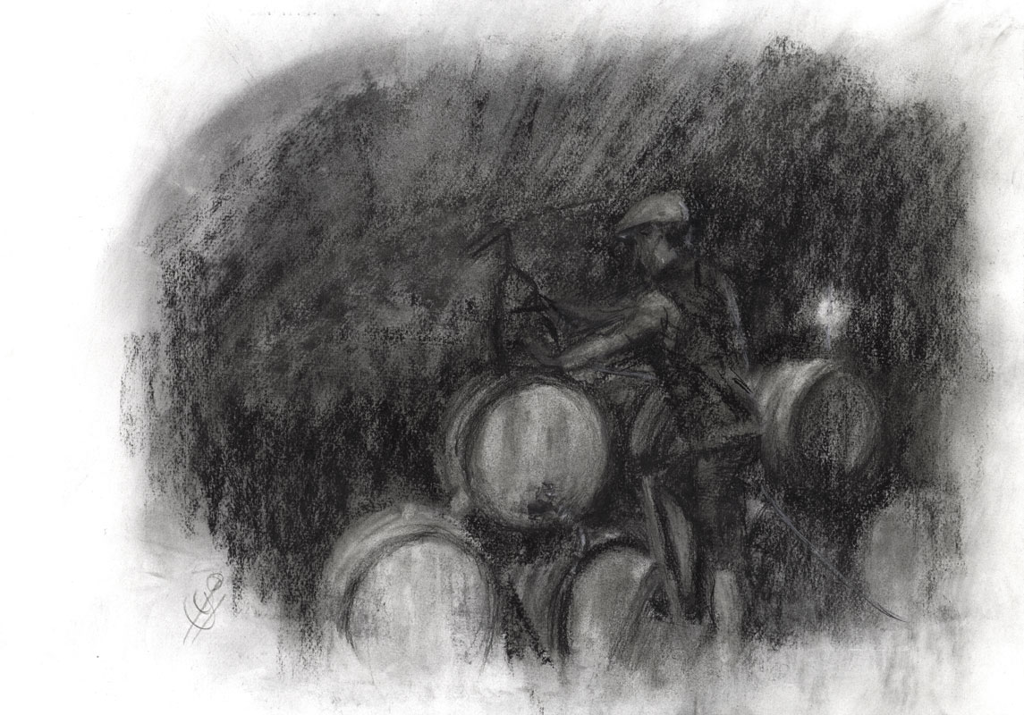 Wine extraction by gravity from the barrel. Sébastien at Domaine Hubert Lignier.
