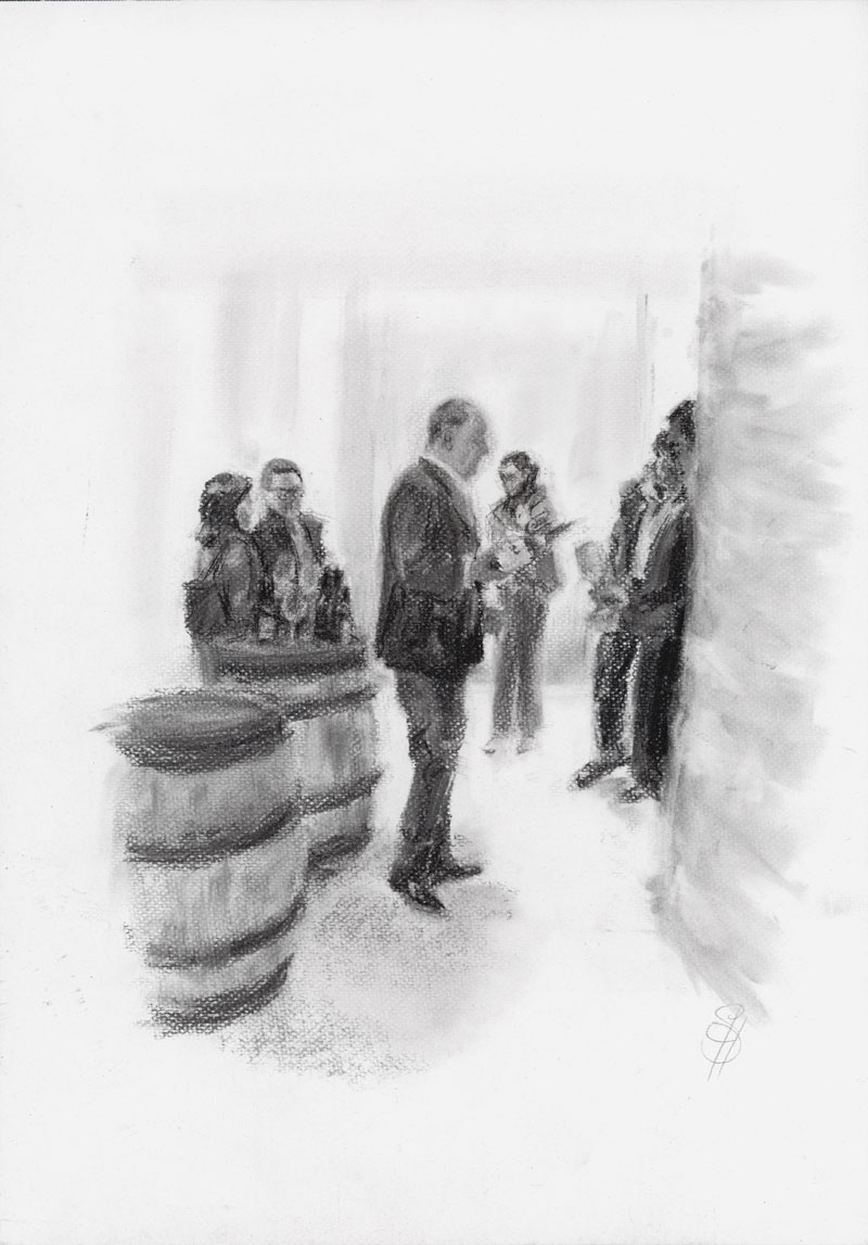 Group tasting in the cellars by Brice, Domaine Leflaive.