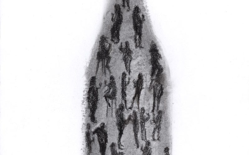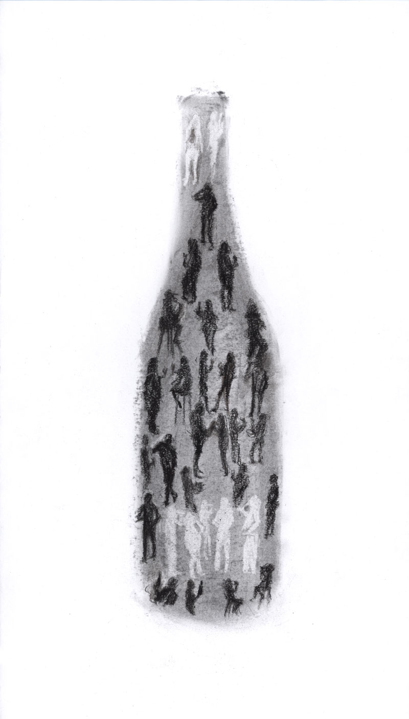 Bottle created from the movements of staff and visitors at a wine tasting.0